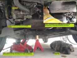 Paso 1.-Levantamos el vehículo de manera segura con el gato hidráulico y aseguramos su altura colocando la torre de seguridad.