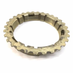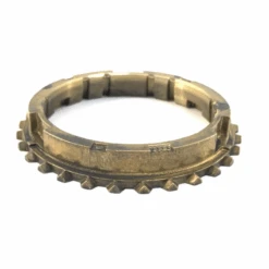 Es difícil hablar de una caja de velocidades o transmisión por que muy pocas personas conocen lo que tienen dentro, toda la atención se la lleva el motor, pero trataremos de explicarlo de forma breve. Una caja de velocidades tiene por función regular la cantidad de revoluciones de salida hacia las ruedas, gracias a la palanca de velocidades le ordenamos a la caja a qué velocidad queremos ir; Dentro tienen un sistema de engranes que toman la velocidad original del cigüeñal y la van modificando hasta que sea la adecuada para viajar, hay que decir que esto no lo pueden hacer así nada más, primero se deben separar, por así decirlo, la caja del motor, esa es la función del clutch; Una vez separadas ahora si podemos meter la velocidad deseada, esto significa cambiar de engrane dentro de la caja. Cuando movemos la palanca de posición, lo que realmente hacemos es manipular unas horquillas dentro de la transmisión que toman los engranes, los acoplan o desmontan dependiendo de la velocidad. Una vez entendido lo anterior, ahora si podemos decir que los anillos sincronizadores tienen la función de permitir los acoplamientos antes mencionados, estos van junto a un engrane de velocidad y le permiten a la horquilla acoplarlas fácilmente sin que se barran, ya que el desgaste se los lleva esta pieza; Se necesita un bronce por cada velocidad y esta es la indicada para la primera y segunda, sus dientes son los que toman toda la fuerza de fricción de la horquilla, recuerda que las cosas dentro de una caja no están estáticas sino en movimiento, es por eso que son piezas que regularmente se deben o deberían reemplazarse ya que su manera de operar es similar a la de las balatas. Cuando sus dientes ya están muy rebajados entonces vienen los problemas de acoplamiento, la palanca truena o las velocidades se desacoplan solas, al menos ahora ya sabes por qué.