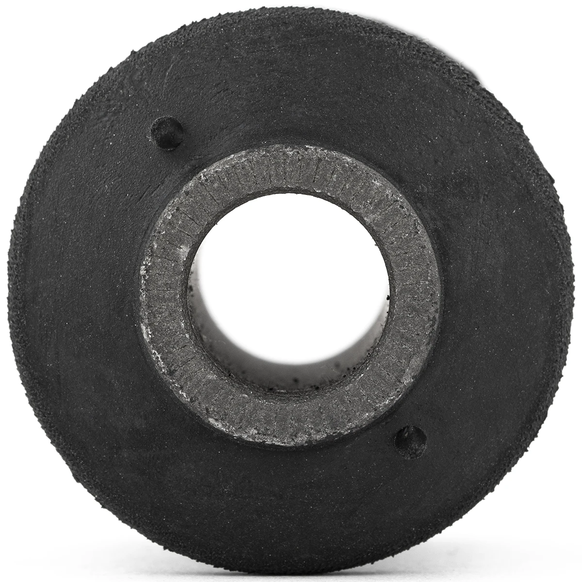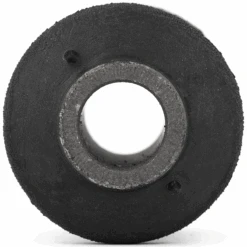 Es una pieza muy sencilla, se trata de una dona de goma flexible, en el centro cuenta con otro buje de metal donde se atornillará con el puente de suspensión. A su alrededor tiene un anillo que sirve como base para la goma y como pared de fricción para ser insertado a presión en la horquilla de suspensión.