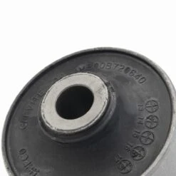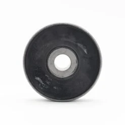 Es una pieza muy sencilla, se trata de una dona de goma flexible, en el centro cuenta con otro buje de metal donde se atornillará con el puente de suspensión. A su alrededor tiene un anillo que sirve como base para la goma y como pared de fricción para ser insertado a presión en la horquilla de suspensión.