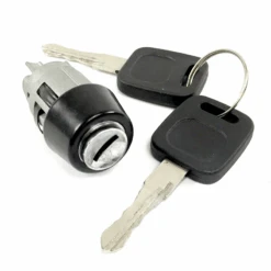 Esta es la pieza que define quien posee el carro, quien tenga las llaves, tiene el control, su función técnica es poder encender el motor y trabar la columna de dirección cuando se le retira del cilindro; Pero ojo, las llaves son un artículo de seguridad, realmente no son las que abren la corriente, eso lo hace la pastilla que está más abajo, este cilindro con llave solo asegura que no cualquiera pueda darle marcha a tu carro. Si no puedes hacer arrancar tu coche y ya revisaste el sistema eléctrico, es posible que el vástago que conecta con la pastilla se haya roto o que las láminas de la combinación se hayas desajustado.