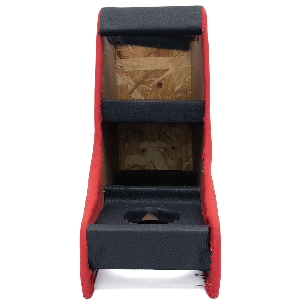 Consola Central de Madera Forrada con Vinil Rojo y con Franja Negra para VW Sedán