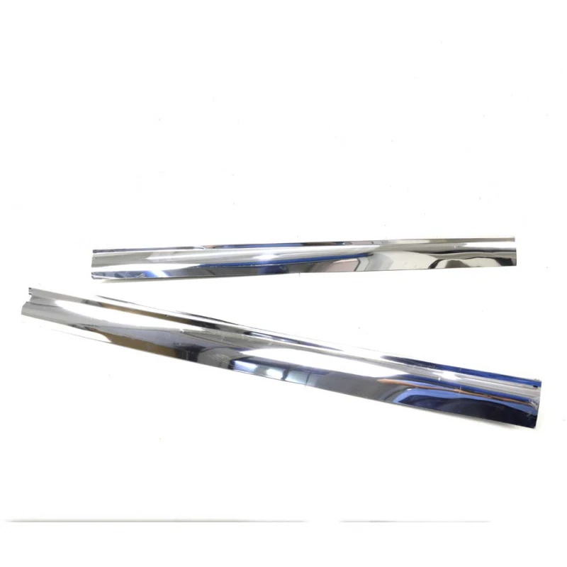 Así como una casa, el suelo de los vehículos deben tener un terminado apropiado para hacernos sentir cómodos dentro, el elemento más grande sin dudas es el alfombrado, este se extiende por todo el suelo e incluso abarca un poco de las, paredes, o postes, hablando de vehículos. Para ocultar los cortes de la alfombra se necesita una moldura que dada su posición se les conoce como estribos interiores. Los estribos que ahora ofrecemos son de diseño elegante y digno de modificaciones sofisticadas, el acabado en cromo lo protege contra caídas de agua y la hace fácil de limpiar, lo último destacable es que funcionan como espejos que reflejaran las luces de cortesía otorgando un efecto bastante agradable e interesante. Cuando decimos Largo, nos referimos a que su curvatura es más extensa y cubre casi por completo el poste interior de la carrocería, por lo demás mide lo mismo que los estribos interiores regulares.