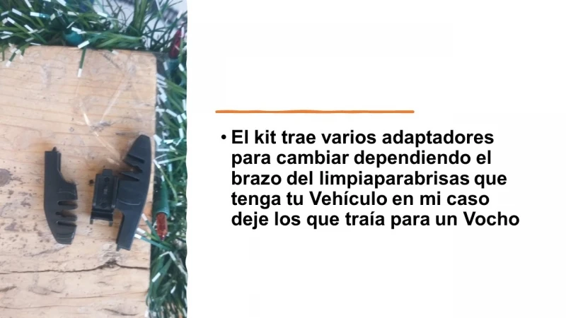 El kit trae varios adaptadores para cambiar dependiendo el brazo del limpiaparabrisas que tenga tu Vehículo en mi caso deje los que traía para un Vocho.