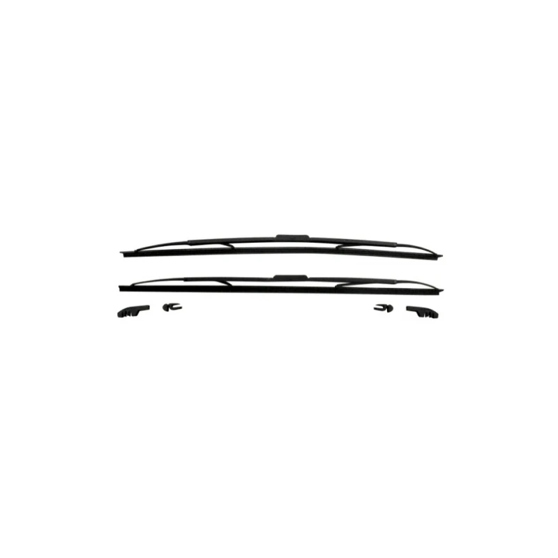 El kit consta de dos plumas y un juego de adaptadores para los brazos limpiadores más usuales en el parque vehicular. El pin más utilizado es el de gancho, por lo fácil que es de colocar y retirar.