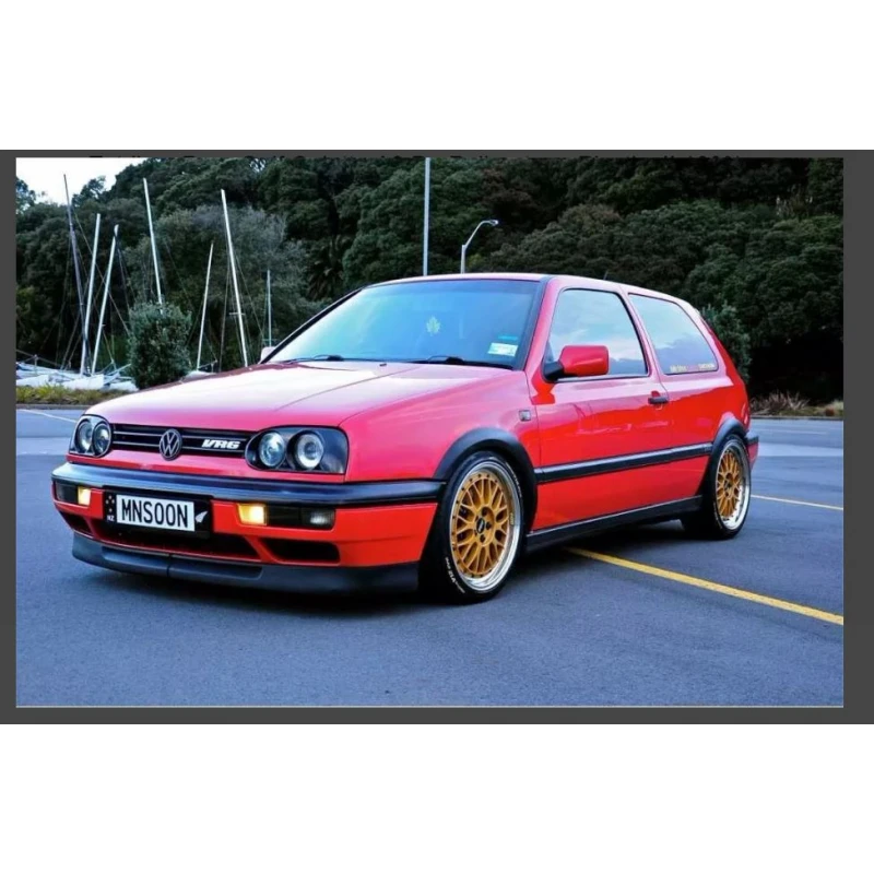 Consideradas como Accesorios de Poder, los spoiler son elementos que incrementan de manera visual, el tamaño del coche, por ende este luce más poderoso e intimidante, junto con los estribos y las cantoneras, estos equipamientos transforman completamente la vista de la carrocería haciéndola lucir más grande y potente que una versión sencilla, esto es muy utilizado por quienes buscan sobresalir entre los demás pilotos. Volkswagen doto de mucha fuerza a sus modelos Mk3 con una facia que completa, casi toca el suelo, así nació una nueva tendencia en diseño. Para colocarlos correctamente, instálalos de a uno a la vez, empezando por los bordes cercanos a la llanta y hacia el centro, la ceja de unión tiene más longitud de lo normal para ocultar y corregir cualquier deformación que haya sufrido la facia.