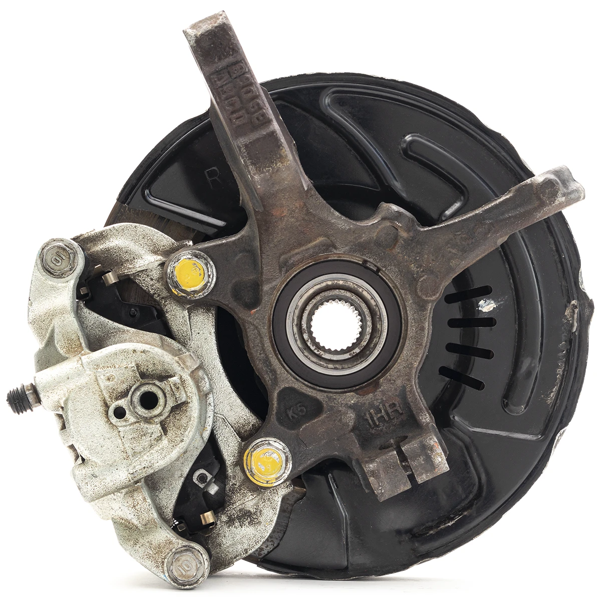 Por el lado de los frenos nos encontramos con el disco y el cáliper, ambos ejecutan la acción de detener la rueda, dentro del cáliper se encuentran las balatas quienes por medio de fricción se adhieren a los discos para frenar el giro de las ruedas progresivamente.