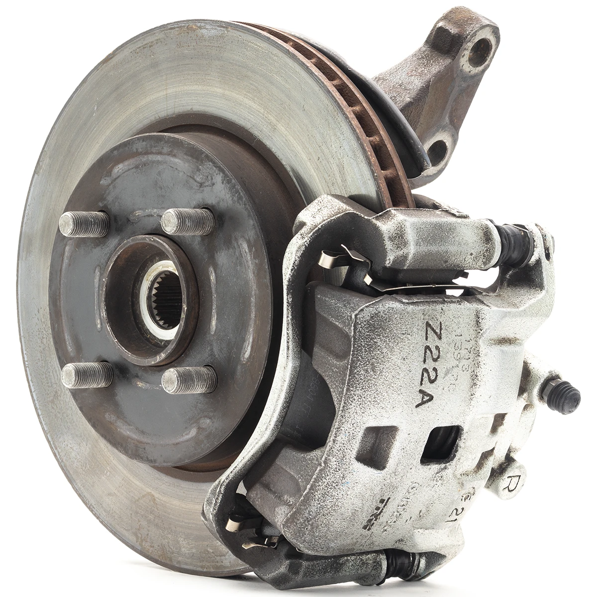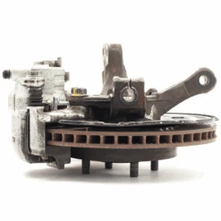 Pues es una sección casi completa de la suspensión, no la ves porque la rueda lo cubre, pero el kit de frenos es prácticamente toda la unión entre las ruedas y el auto. Lo primero a destacar vendría a ser la mangueta, que es de donde todo se sujeta, es una pieza única de hierro sólido muy resistente.