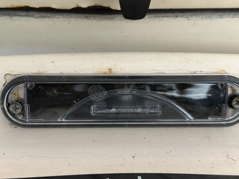 El plafón en una Combi lo vas a encontrar en la tapa que oculta el motor, está muy bien posicionada porque se oculta de la lluvia y es muy discreto. Aunque por alguna razón, parece que esta pieza se estropea rápido. Quizás se deba a que, al estar en una tapa que constantemente se utiliza, la vibración eventualmente rompe la mica que protege al foco.