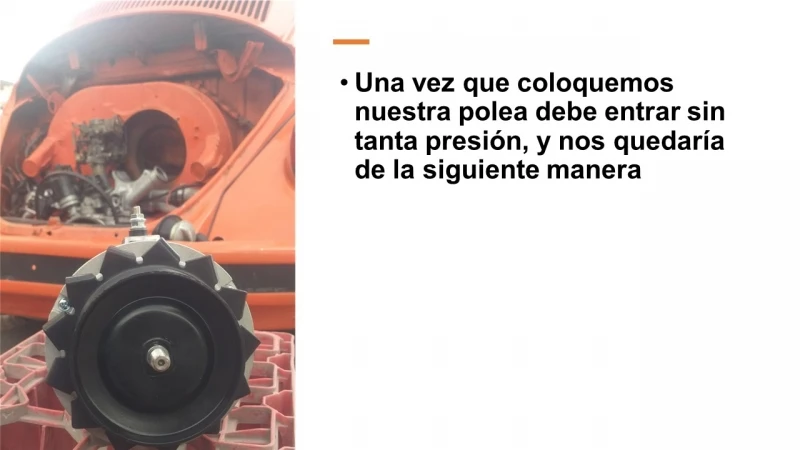 5. Luego pondremos nuestra nueva polea la cual debemos cuidar que el canal que tiene en el centro coincida con nuestra cuña