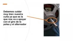 6. Una vez que podamos ingresar la parte trasera de nuestra polea de alternador volveremos a colocar las mismas lainas que tenía nuestra anterior polea y pondremos nuestra banda y la parte externa de nuestra polea