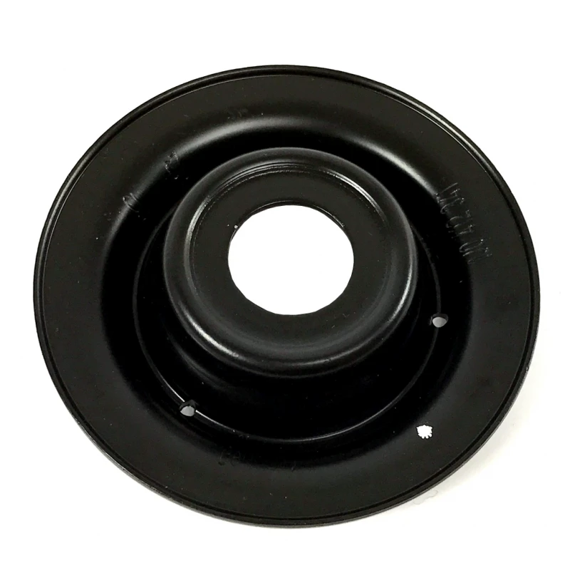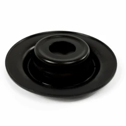 Este es el accesorio que recibe el amortiguador en la parte de arriba de la suspensión; Este a diferencia de la base de goma, si se puede ver cuando levantas el cofre, el vástago del amortiguador pasa por aquí y se asegura con una tuerca, consolidando la instalación. Es una pieza metálica que pareciera que no podría averiarse, pero, increíblemente, el movimiento giratorio que efectúan los amortiguadores irán desgastando el metal hasta literalmente degollarlo, es verdad, ya lo hemos comprobado; Por esta razón recomendamos revisarlo en cada cambio de amortiguadores y considera reemplazarlo cada 2 cambios de amortiguadores.