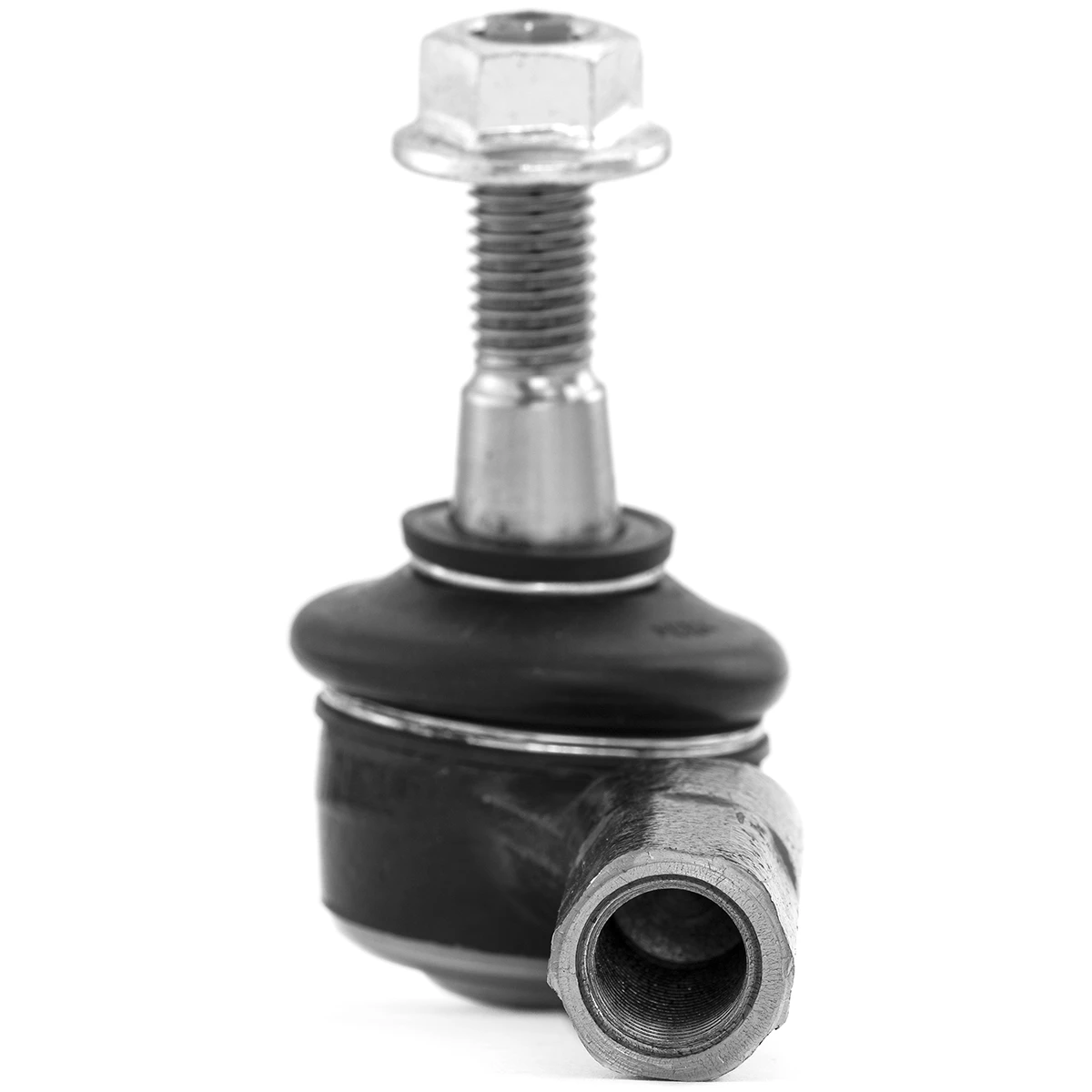Observándola parece simplemente un tornillo en escuadra, pero realmente es una articulación hecha de metal. Lo que hace a esta pieza funcional es su unión de bola llamada rótula. La rótula es un modelo de articulación que permite al vástago de la terminal, esa sección que tiene la tuerca, moverse en cualquier dirección, por medio de grasa, la unión de bola genera un movimiento muy suave pero bastante firme, por eso se le pone un cubrepolvo para evitar la entrada de contaminantes, por el extremo opuesto hay cuerda interna que servirá para acoplarse con la bieleta, otra sección importante de la dirección.