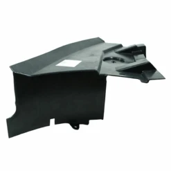 Esta tolva realiza una función extra, sirve como un conducto para que, junto con las demás tolvas, concentren la masa de aire directamente al radiador de refrigerante del motor, optimizando así su capacidad de enfriar. Tal vez no lo habías notado, pero durante el viaje las pequeñas piedras o trozos de basura son catapultadas por las llantas ya sea del mismo coche o del carro de enfrente y esto puede ocasionar rupturas si es que impactaran directamente a las poleas, el cárter, mangueras o el mismo radiador.